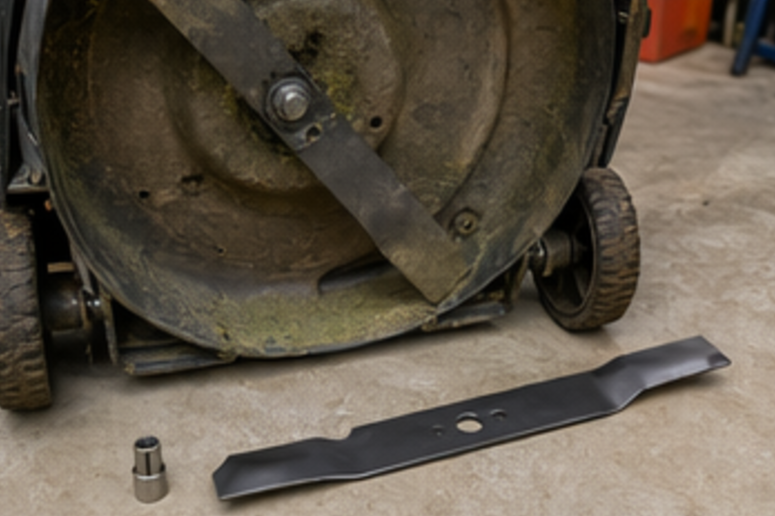 Install the new blade in the same orientation. Tighten to the torque listed in your mower manual, then spin the blade by hand to confirm it clears the deck.