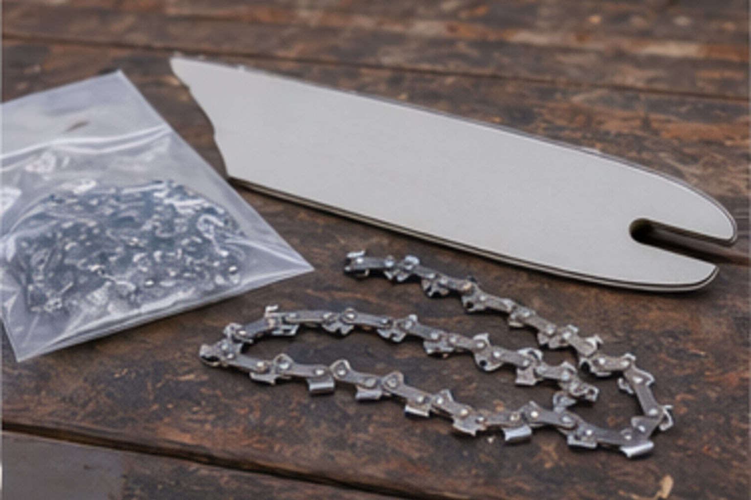 Chain packages look similar in a garage drawer. Before opening the saw, read the bar stamp or old chain specs and confirm pitch, gauge, and drive-link count.