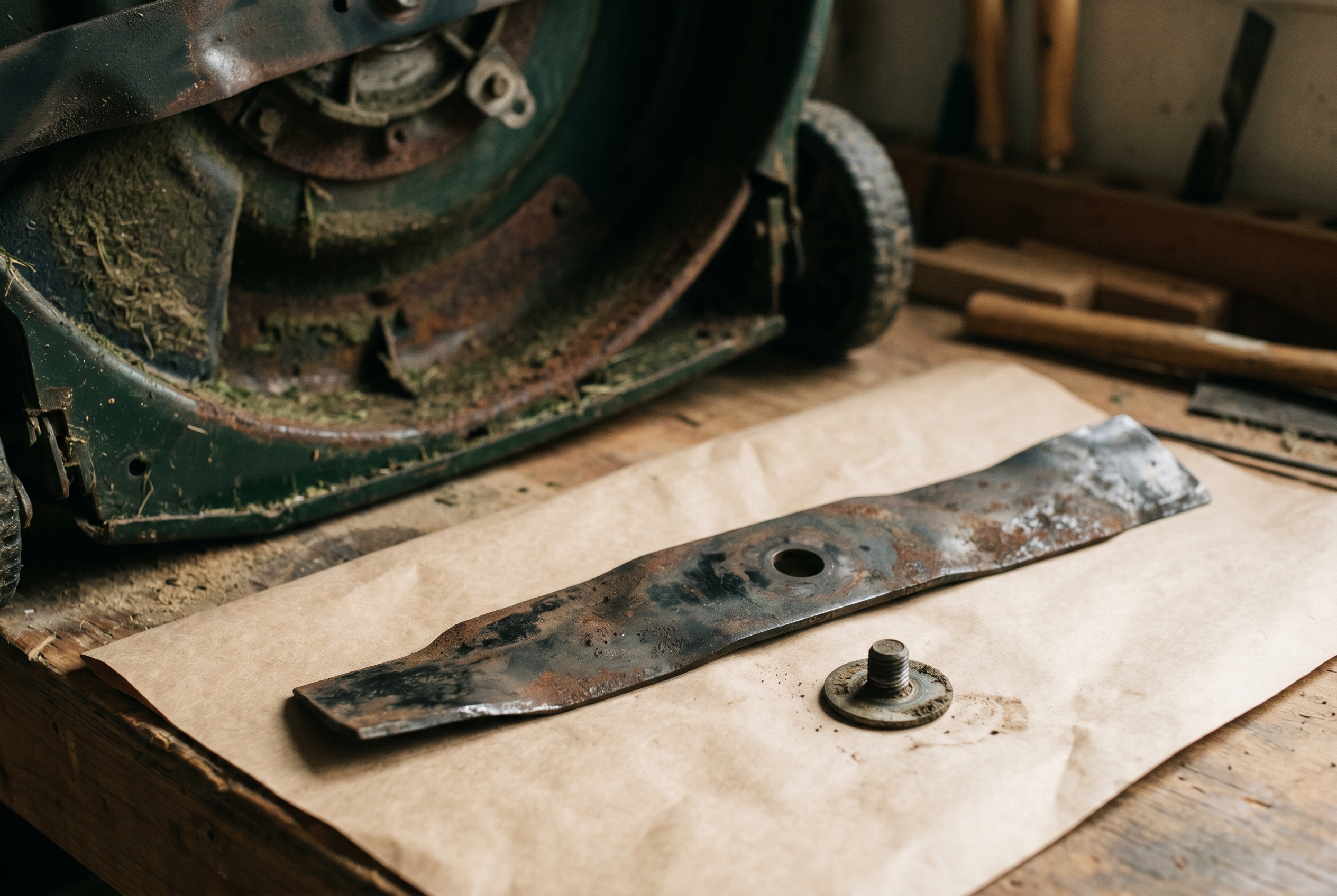 A mower blade is a wear part, not a consumable. A decent 1055-steel blade has many sharpening cycles in it before the cutting edge has been filed back far enough that the lift profile shortens and the cutter no longer throws clippings effectively.