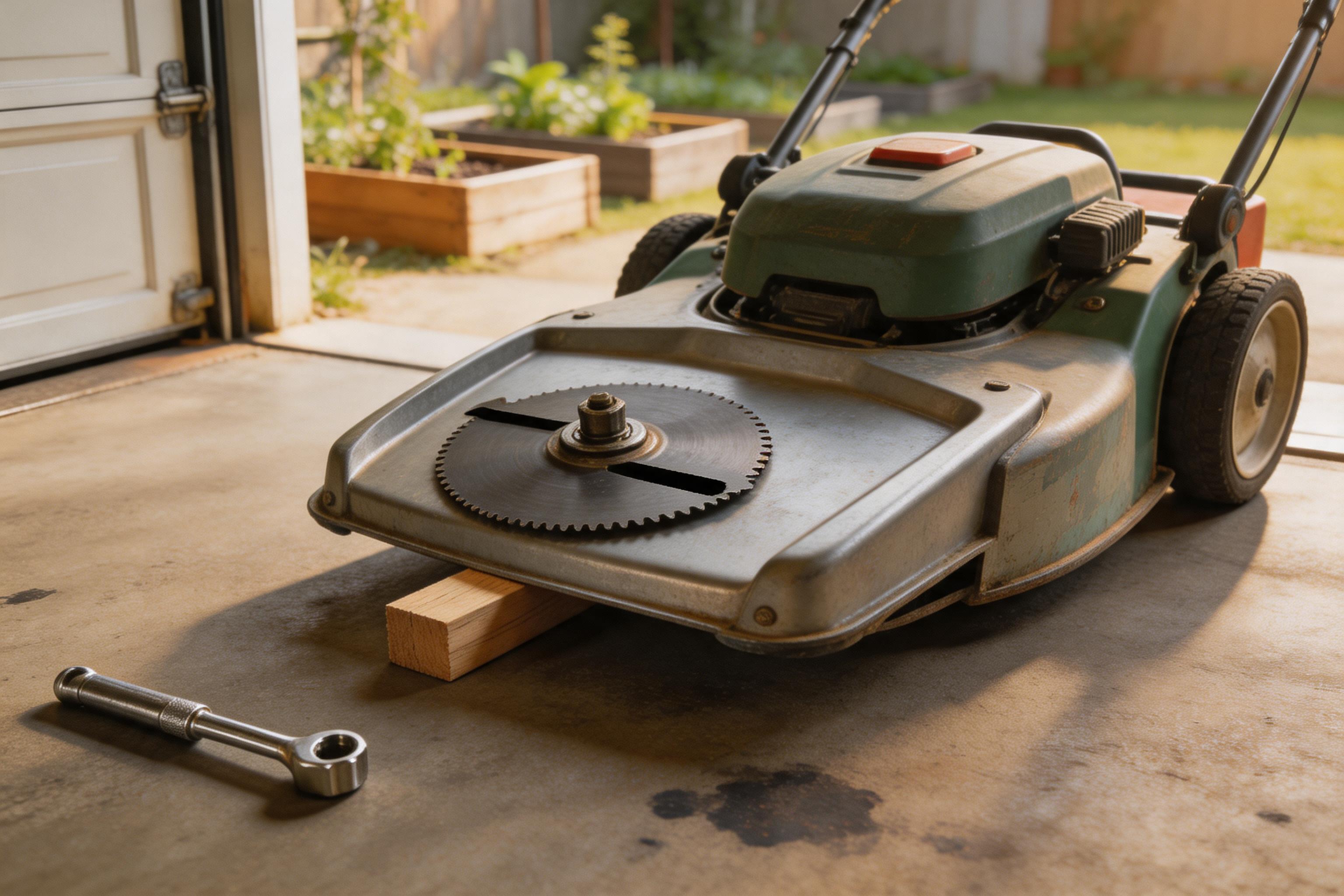 Install the new blade in the same orientation, tighten to the mower manual's torque spec, then spin it by hand to confirm it clears the deck. After the first short mow, stop and inspect the bolt again.