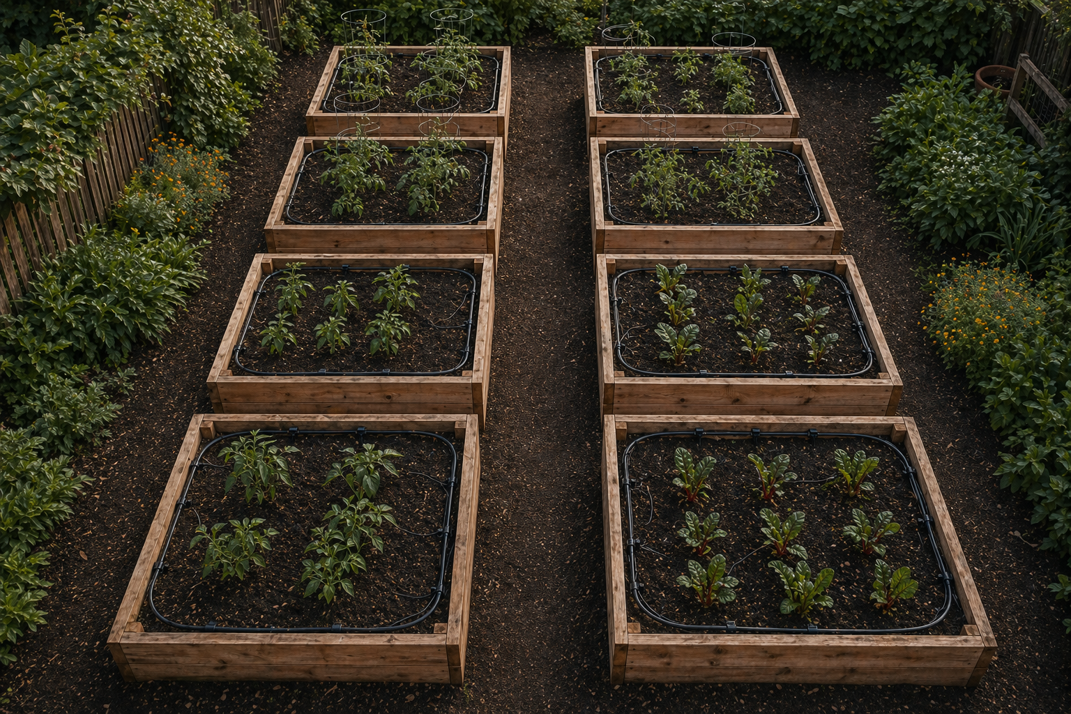 Portland summers are drier than people remember. June through September last year we had twelve days over 95°F, and during those stretches the beds with shallow-rooted greens (lettuce, arugula, bok choy) needed water twice daily. Deep-rooted beds (tomatoes, peppers, the basil forest) wanted one long soak every other day at most.